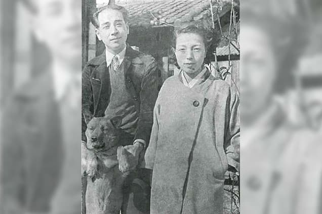 Photo: Heihachiro Horiuchi and his wife Hiroko, with their dog Mac